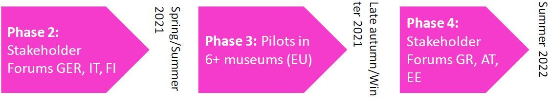 - Open stakeholder forums will take place in Germany, Finland, Italy, Austria, Greece and Estonia. These will be used to formulate the model together with the museum sector stakeholders. Come and join!